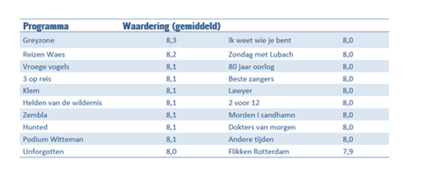 Of je nu inspiratie zoekt voor een avondje tv kijken of op zoek bent naar de beste programma’s om jouw reclame bij te tonen, NPO biedt genoeg. De twintig best gewaardeerde televisieprogramma’s van NPO scoren namelijk zeer mooie rapportcijfers.